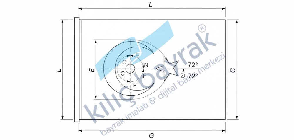 Türk bayrağının ölçü ve oranları kesin çizgilerle belirlenmiştir. Ay ve yıldızın konumu, bayrağın en-boy oranı ve boşluk dengeleri rastgele belirlenemez. Bu ölçüler, bayrağın her ortamda aynı görsel bütünlüğü sunmasını sağlar.