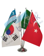 Ofisinize prestij ve şıklık katacak, yüksek kaliteli malzemelerden üretilmiş Dörtlü Masa Bayrağı Seti. Makam odaları, toplantı salonları ve çalışma masaları için özel olarak tasarlanan bu set, milli duygularınızı en zarif şekilde yansıtır.