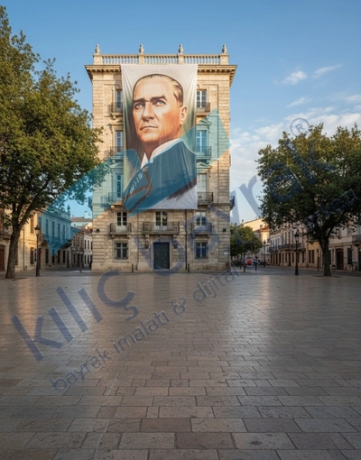 Ulu Önder Mustafa Kemal Atatürk’ün anlamlı ve etkileyici portresini yansıtan özel bir tasarımdır. Kılıç Bayrak kalitesiyle kumaş ve vinil seçenekleriyle üretilen Ata 07, standart ölçüsü sayesinde makam odaları, resmi kurumlar, eğitim alanları ve tören alanlarında şık bir görünüm sunar. Yüksek baskı çözünürlüğü, canlı renkleri ve dayanıklı yapısıyla uzun süreli kullanım için ideal bir Atatürk posteridir.