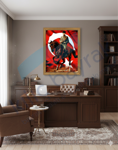Ata 18, Mustafa Kemal Atatürk’ün liderlik gücünü ve vakur duruşunu yalın ama etkileyici bir görselle buluşturur. Kılıç Bayrak kalitesiyle üretilen bu poster; kumaş ve vinil seçenekleriyle, standart ölçülerde hazırlanmıştır. Dengeli kompozisyonu ve güçlü görsel dili sayesinde bulunduğu ortamda dikkat çekici ve anlamlı bir etki oluşturur. Ata 18, Atatürk’ün kararlılığını ve değerlerini sade bir anlatımla yansıtmak isteyen alanlar için ideal bir tercihtir.